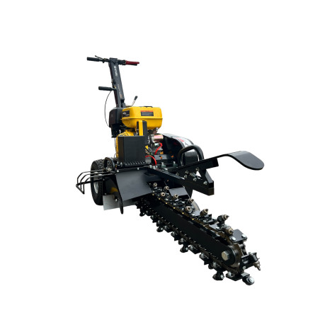 Cuenta con una profundidad de hasta 60cm. Ideal para perforar tierras compactas con pequeñas piedras. La optimización de tiempo que puede lograr con esta zanjadora es de unos 60 metros por hora de trabajo.